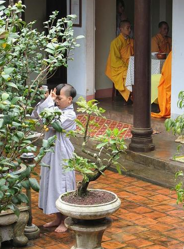 Nhận khúc bánh mì từ tay tôi, khuôn mặt nhà sư có vẻ xúc động và nói: “Nam mô a di đà Phật, thí