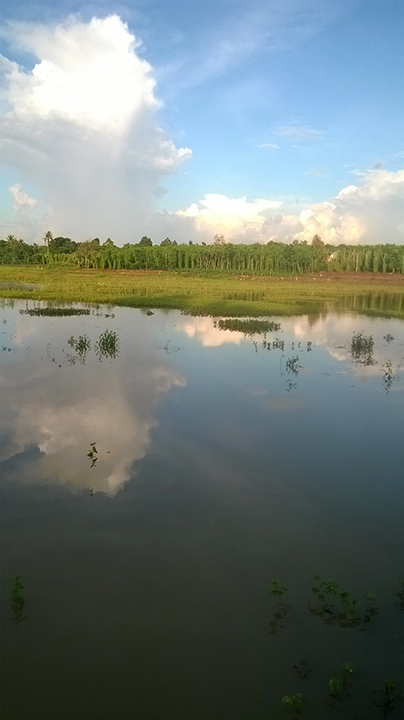 Bây giờ đang mùa mưa, nước hồ lênh láng. Bờ bên kia là nhừng vườn tiêu xanh tốt, cao ngất ngưỡng đã dần sẫm màu chiều, thấp thoáng mấy bóng dừa xỏa tóc lung linh. Không còn những dáng cò tội nghiệp nằm ngủ chênh vênh thành bầy trên mấy rặng cây xanh. Tôi bâng khuâng chạnh nghĩ, không biết lũ cò cần mẫn mò tôm bắt cá vất vả kiếm ăn khi mặt hồ cạn nước của mùa khô, tối tối lại bay về đậu vật vờ ngủ trên những cành cây ấy bây giờ đã thiên cư tận nơi đâu...