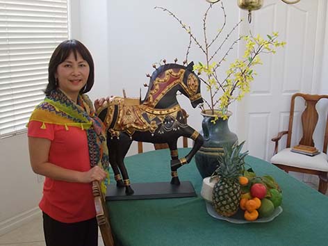 Năm con Rắn sắp qua, năm con Ngựa sắp đến, như những năm trước, chờ đến cuối tuần trước Tết chị em tôi lái xe đưa ba mẹ tôi lên Sài Gòn nhỏ (Little Sài Gòn) cách nơi tôi ở gần 100 dặm đi chợ Tết. Little Sài Gòn là nơi dân Việt cư ngụ khá đông nên không nhiều thì ít hương vị Tết vẫn còn phảng phất. Chúng tôi hòa vào dòng người, loanh quanh ngắm nhìn những gian hàng bán hoa: Mai, Lan, Đào, Cúc, Glaïeul, Thuỷ Tiên, … muôn màu muôn vẻ thật đẹp, những gian hàng bán cây ăn trái: bưởi, cam, quýt, quật, … đầy trái nặng trĩu, những gian hàng bày bán trái cây tiêu biểu đặc sản của quê nhà: chôm chôm, nhãn, sapoche, dưa hấu, mãng cầu xiêm, chuối mật, những quầy hàng mứt bánh, những gian hàng bán đồ chơi màu sắc đỏ vàng rực rỡ. Kẻ đi qua, người đi lại mua bán đông vui, cười nói nhộn nhip, làm chúng tôi vui theo. Không nói nhưng chúng tôi không khỏi chạnh lòng nhớ đến những cái Tết năm xưa, sao vui quá, hạnh phúc quá!