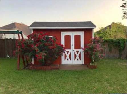 Tuy vậy, mẹ J. vốn ngày xưa rất thích chơi búp bê nên cô cho cái nhà kho nhỏ xinh xắn này xây như một căn nhà tí hon thật sự, với cửa sổ và cửa ra vào hai cánh viền màu trắng, phần còn lại sơn màu đỏ rượu vang, trước nhà là một bật thang cấp bằng xi măng dẫn đến cửa, mỗi bên có xây thêm một bồn hoa hình chữ nhật, bằng loại gạch màu đỏ có lôm đốm trắng, vốn đã được dùng để xây toàn bộ gian nhà chính.