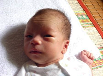 mông lo lắng về tương lai trước mắt với trọng lượng nhỏ bé do sanh sớm vì thai thiểu ối, thằng bé
