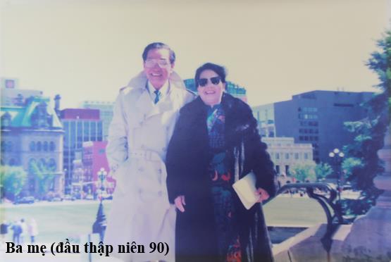 Cổ nhân có nói “Thế gian được vợ mất chồng”, câu nói ấy rất đúng với ba mẹ tôi. Lúc nghèo tôi không biết ba tôi thế nào? Khi kinh tế gia đình khá lên, tôi nhận thấy ba tôi là người đàn ông hào hoa phong nhã; chỉ làm thư ký trong một hãng buôn, nhưng rất lịch lãm, thích ăn diện áo quần, giày dép, đầu tóc khi nào cũng xức dầu thơm bóng láng, thích chơi xe vespa, ô tô, ít quan tâm đến kinh tế gia đình, sống cuộc đời vô tư, thảnh thơi thơ túi rượu bầu. Tội nghiệp ba tôi khi qua Canada chưa hưởng thụ được bao lâu thì lâm bệnh nặng. Ngược lại mẹ tôi như là người chủ trong gia đình lo toan mọi việc, chăm sóc chồng, con từng miếng cơm tấm áo, dạy dỗ con cái cho đến bôn ba giữa thương trường. Thực vậy là một y tá giỏi mà không qua một trường lớp nào; làm kinh tế, kinh doanh giỏi mà không hề học về kinh tế hay kinh doanh gì. Làm cô giữ trẻ (baby-sitter) bên xứ Canada, mẹ tôi chăm sóc, yêu thương con cái họ như chính con mình nên rất được tín nhiệm. Không một công việc làm ăn nào mà mẹ tôi không dám nhúng tay vào ở trong nước trước và sau 1975 cho đến sau này khi định cư ở Canada cũng vậy. Cho đến bây giờ tuổi đã ngoài 80 máu kinh doanh của mẹ tôi vẫn còn bốc cháy trong tim