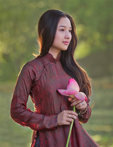 Nón lá o che nghiêng chiều tím
