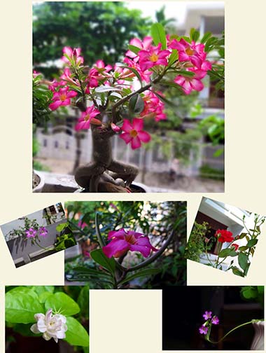 Mỗi ngày tôi mở cửa bước ra balcony, lặng ngắm sắc màu mùa xuân đang chiếm lĩnh khoảng không gian trước nhà. Những hàng bonsai sứ Thái Lan đang vào mùa nở rộ hoa. Những cánh hoa hồng đỏ thắm, ra nụ từng cụm, từng cụm nên khi nở là chói loà sắc đỏ. Những nhánh nhài mà mỗi lần ghé mũi vào những đoá hoa trắng tinh tuy không rực rỡ nhưng thoang thoảng hương thơm này, tôi đều hít thật sâu như thể sợ mùi thơm bay đi mất. Và chậu me đất nhỏ bé lúc nào cũng có những bông hoa tim tím, nho nhỏ, chẳng có hương thơm, nhưng vẫn quyến rũ vô cùng. Tôi nghĩ, cứ đẹp, cứ dễ thương là tôi thích. Hương hoa cũng được, sắc hoa cũng được, đều đáng yêu hết cả. Vì nó vốn là vậy mà, có muốn thay đổi cũng chẳng được đâu.