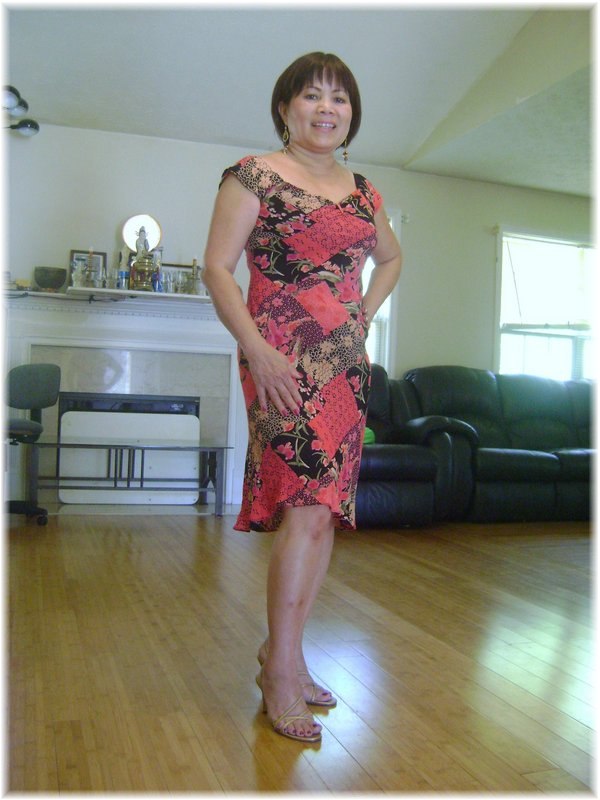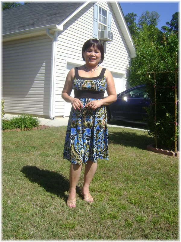 Vẫn cái áo đầm cũ, em lên được 15 pounds và tóc thì ngắn lại.