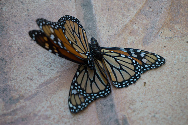 Buổi sáng đứng bên cửa sổ nơi phòng bếp, dõi theo con bướm Monarch vờn bay chập chờn từ vườn nhà sang vườn nhà hàng xóm rồi lại vờn bay ngược trở lại, thỉnh thoảng con bướm hạ cánh, đậu trên chiếc lá hoa hồng non, hút lấy những hạt sương còn đọng trên lá rồi lại chấp cánh bay lên. Hình ảnh ấy mang lại cho tôi một cảm giác thật thanh thản, bình yên. Nỗi ưu phiền còn phảng phất từ tối hôm qua cũng vơi dần rồi tan biến. Vậy mà chiều nay, tôi bắt gặp nó nằm bất động trên nền gạch. Ôi! Hạnh phúc sao quá mong manh!