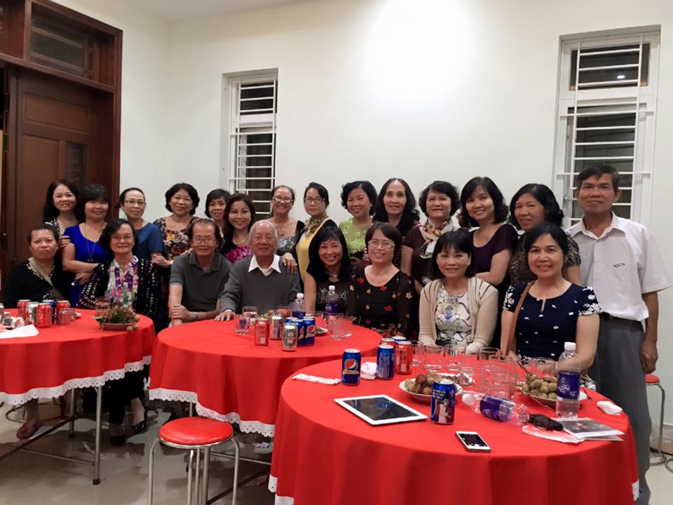 Nói lan man quá, H. kể chuyện buổi gặp mặt chút nghe. Như đã nói ở trên, dầu được mời 4g, nhưng chưa đến 3g rưỡi H. đã hối anh nhỏ nhà H. chở đến nhà Sương rồi. “Dân” 9/4 “chơi” sộp lắm, gởi ngay chiếc taxi 7 chỗ. Sương và H. đến nhà thầy Nguyên. Có thầy Thụy đã ở đó nên trong lúc thầy Nguyên thay đổi “xiêm y” Sương và H. nói chuyện sôi nổi cùng thầyThụy. “Té ra” ông Thầy điển trai, trẻ măng mà ngày xưa các kiều nữ Hồng Đức mê mẩn nói chuyện cũng vui ra phết. Với lại bây “chừ” cả thầy và trò đều đã rêu phong lắm rồi, có chi mà ngại ngần.