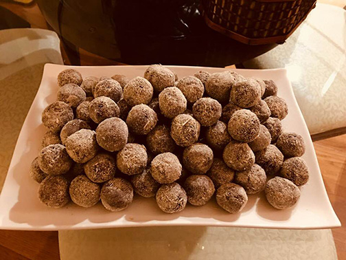 Trước hết NA phải làm nhiều thứ mứt. Tất cả đều xay/cắt nhỏ. Không nhất thiết phải có đủ, nhưng cần nhất là mứt kim quật, mứt gừng dẻo, me chua. Tui bỏ thêm mứt táo (vì cúng dư, không ai ăn nên làm mứt), mứt thơm. Xay nguyễn mấy trái dates khô bán ở Costco. Khoai lang hấp chín, xay nhuyễn. Trộn tất cả các thứ với nhau, non 2 phần mứt, già 1 phần khoai. Dáo trên lửa nhỏ cho đến khi ráo. Sau đó vo từng viên nhỏ. Cam thảo xay nhỏ để áo bên ngoài cục ô mai. Món ni mất quá nhiều công. Khá mệt.