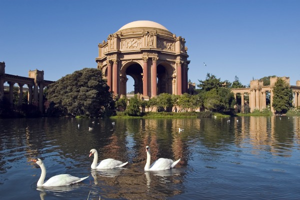 Rời khu pháo đài mang dấu vết một thời hoàng kim, Willis lái xe đưa cả nhóm đi thăm Cung điện Mỹ Thuật - Palace of fine Art. Đây là một trong những thiết lập đẹp nhất ở San Francisco, một trong những địa điểm chụp ảnh nhiều nhất thành phố. Cung điện mỹ thuật được xây dựng năm 1915, xung quanh một đầm phá nhân tạo nhỏ, yên tỉnh. Gồm có một nhà tròn ở trung tâm, mặt dưới của mái vòm được trang hoàng bằng những bức tranh cổ, dảy cột cao theo phong cách Hy Lạp điêu khắc hình ảnh những phụ nữ trong dáng điệu mô tả sự thụ thai và sinh nghệ thuật, các bức tranh khác là hình ảnh các đặc sản của Cali: Anh Túc, cam quýt, vàng và lúa mì. Cả cung điện được soi bóng xuống hồ nước với đàn thiên nga đang nhàn nhả bơi lội. Hoa, cỏ quanh hồ tươi thắm, khung cảnh rất trữ tình lãng mạn. Chúng tôi tha hồ mà chụp hình. Nguyệt Nga đặt tên đây là Lâu Đài Tình Ái vì nơi đây đang diễn ra hai đám cười ngoài trời; một của người Ý, cô dâu váy đen, có khăn mạng che mặt, chú rể và khách dự đều mặt áo đen, đám kia theo tập tục Tây ban Nha, cô dâu và các phụ dâu mặc váy đỏ rực rỡ. Bé Oanh cứ suýt xoa khi ngắm các công trình kiến trúc tuyệt mỹ, không ngạc nhiên gì vì Oanh chính là cô sinh viên ngành kiến trúc vừa mới tôt nghiệp mà!