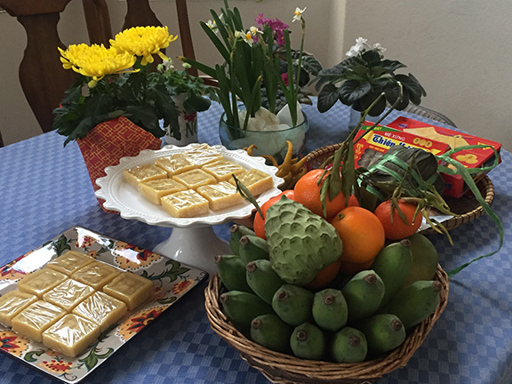 Lần đầu tiên tôi ăn một cái Tết thật nhạt nhẽo. Tôi cũng bỏ hết một ngày chùi dọn nhà, cũng làm bánh, làm nem (hai món này tôi vừa học được từ một người bạn mới), mua hoa, mứt bánh, sắm mâm ngũ quả chuẩn bị đón Tết vậy mà tôi chẳng cảm thấy bồn chồn, vui như Tết mọi năm.