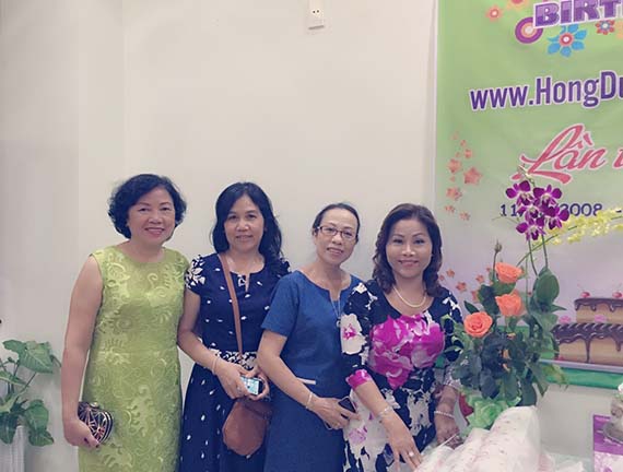 Ngay trong buổi họp mặt, qua email, tôi nhận được lai rai những tấm ảnh do Phương gởi, cảm nhận rất ấm áp. Nào là hoa, là bánh, là những cuốn lịch làm quà bên cạnh các gói quà be bé còn có một banner Mừng Sinh Nhật để làm phông chụp ảnh, quá chu đáo! Hình chụp chung, tôi thấy có Thầy Nguyên, Thầy Thụy, Cô Ngọc Thanh, các bạn lớp 9/4 mình có Lệ Hồng, Tía, Tuyết Hằng, Quang Ấn, vợ chồng Phương Thân, Lân, Phạm Hoa, Nguyệt Thu, Thu Sương, có cả bạn Kim Hằng...các bạn lớp hàng xóm có chị em song sanh: Thanh Thu, Thanh Thủy, Ngọc Nga, Thơ Thơ, Hoàng Châu các các, Lý Thanh Huơng. Tấm hình chuyên chở những nụ cười rất tươi, những ánh mắt chan chứa tình cảm và tôi cảm nhận được hơi ấm của tình bạn, tình thầy trò, lòng tôi như ấm lại trong cái lạnh se người của mùa đông Atlanta.