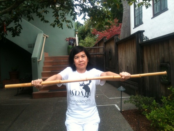 Tôi về than thở với bạn bè thì TV cho tôi một cái đĩa dạy cách tập thể dục với gậy. Tôi lại cố tập cho được,