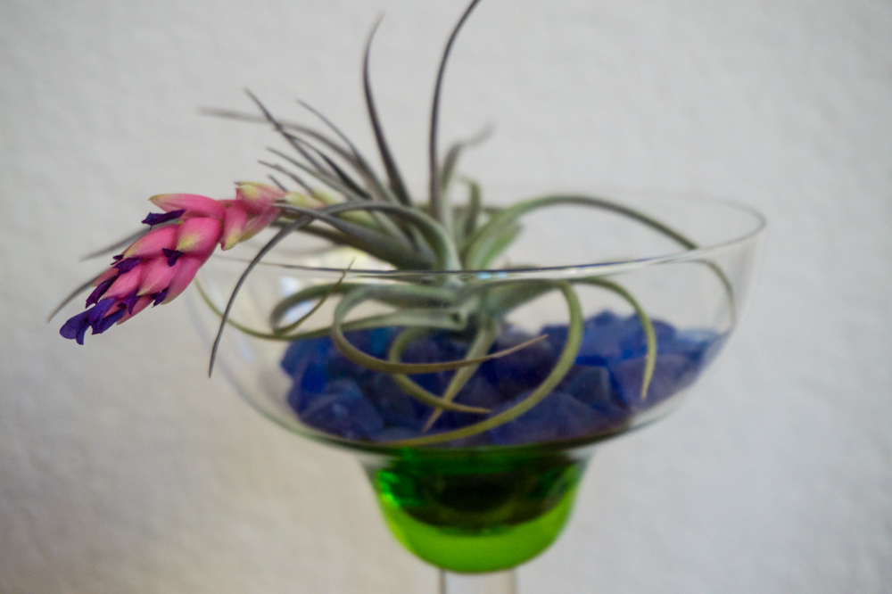 Vào dịp Tết năm nào đó, không nhớ, cùng gia đình đi chợ Tết, khi ngang qua dãy hàng hoa tôi nhìn thấy một gian hàng bày bán air plants (cây không khí). Tên gọi "cây không khí" nghe rất mới lạ, cách bày trí cây đơn giản nhưng dễ thương đã làm tôi tò mò, dừng lại xem. Những cây không khí có lá màu lục, xanh ngọc, hồng nhạt, tím nhạt, có hoa gồm ba màu tươi sáng - hồng, tím, và vàng hòa bên nhau thật đẹp mắt được gắn vào những khúc cây khô, cành cây nhỏ, vỏ sò, hay được sắp xếp xinh xắn trong những bầu thủy tinh nhờ bàn tay kheo léo của chủ nhân đã cuốn hút dần tôi vào thế giới đa dạng của loại cây mà tôi mới biết đến.