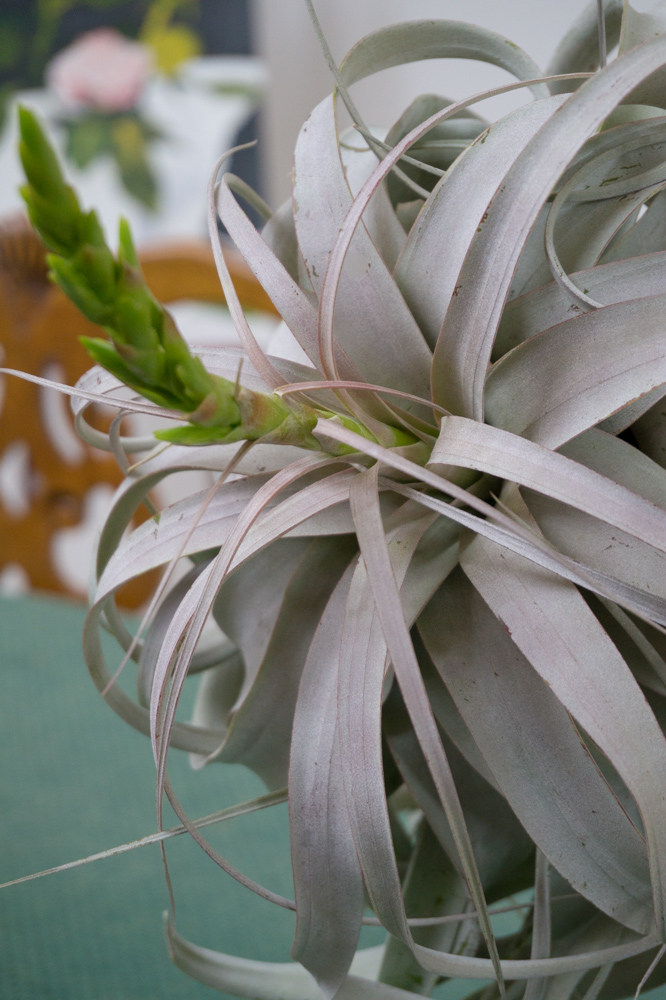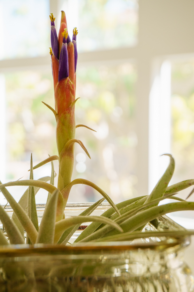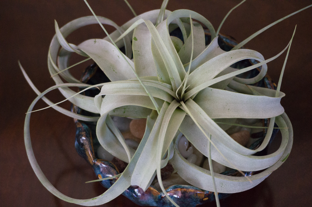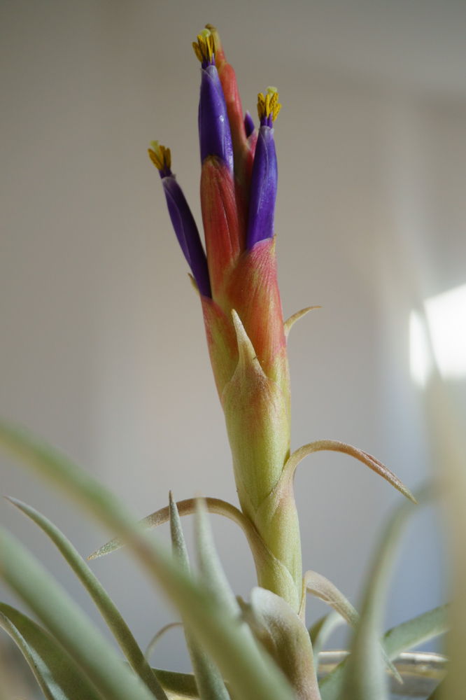 Sau một thời gian dài săn sóc, thấy cây không lớn lên hơn bao nhiêu, lại không ra hoa, tôi mất kiên nhẫn lẫn hứng thú. Tôi mang nó ra ngoài hiên nhà bỏ mặt đó, thỉnh thoảng tưới vào chút nước. Thật không ngờ sau 1-2 năm nó vẫn còn sống và nhú lên một chồi hoa be bé màu tím. Tôi mang nó lại vào bên trong chờ xem hoa nở. Được tận tình chăm sóc, cây từ từ hồi sinh. Tôi tiếp tục lúc phun, lúc ngâm nó vào nước đều đặn, và tin tưởng từ đây cây sẽ tươi tốt trở lại, ai ngờ vài tuần sau, thân nó từ từ mềm ra, héo dần rồi chết. Lần đầu biết đến cây không khí tôi thích thú bao nhiêu thì giờ niềm vui ấy đã xìu xuống như bánh bao chiều :).