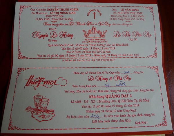 NA: Chúc Mừng gia đình Mộng Linh. Chúc hai cháu Lê Hoàng - Phú An trăm năm hạnh phúc.