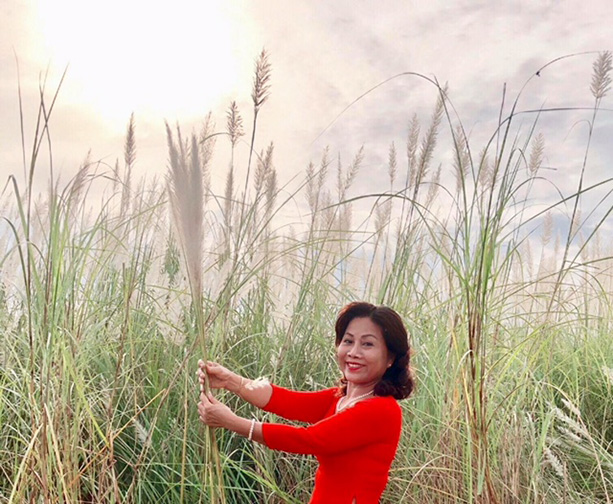 Bước chân nhè nhẹ giữa vùng lau cao hơn đầu người, dưới chân tôi là những bông lau trắng đã bị những du khách tới trước dẩn đạp đến tội nghiệp. Tôi ngồi xuống lượm từng bông lau đã bị bẻ vứt rời rạc làm thành bó hoa để chụp hình, tạo dáng, bàn tay tôi nâng niu chúng nhẹ nhàng, chụp xong kiểu hình, tôi sè sẹ để lại dưới gốc lau, chân bước không đành. Sao tôi thấy vương vấn mỗi bước chân khi bước qua nó, để rồi ngỡ ngàng ngồi xuống ngắm những bông hoa trắng muốt lòng thấy bồi hồi lạ lụng. Hồn tôi như bay bổng cùng những bông lau trắng, bao mệt mỏi ưu phiền trong tôi cũng dừơng như tan biến.