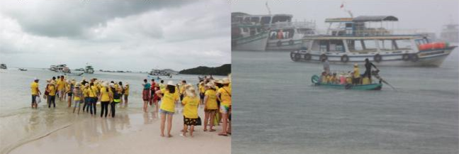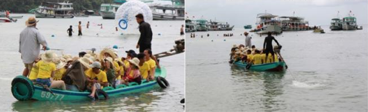 Đi dọc theo bờ biển Bãi Sao, tôi đã thấy những chiếc thuyền máy nho nhỏ, chuyên chở đầy cả người và người, già trẻ lớn bé gì cũng không thiếu, có nhiều em bé đang được bồng bế trên tay cũng đi du thuyền, một điều rất lạ không một ai mang áo phao bảo hộ, mặc dù những chiếc thuyền chỉ là thuyền trung chuyển ra du thuyền, nhưng họ đã vượt quá vòng đai an toàn về độ sâu của nước biển và hầu như tất các thuyền đều đã chở quá trọng tải cho phép. Tôi không biết tên của những công ty du lịch và chủ nhân của những chiếc thuyền là ai? Họ đã cẩu thả, thiếu tinh thần trách nhiệm trong việc vận chuyển du khách.