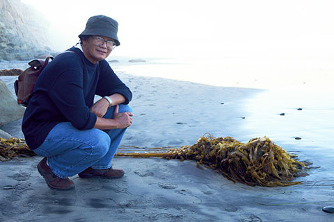 Đi bộ lên núi xong, Thầy và tôi tiếp tục đi bộ dọc theo bãi biển để về lại bãi đậu xe. Nhờ hôm ấy trời ấm và nắng dịu nên cả Thầy và tôi chẳng cảm thấy mệt. Thỉnh thoảng Thầy và tôi dừng lại chụp hình. Một nhóm trẻ đi ngang, tôi nhờ chụp một tấm hình chung có hai người làm kỷ niệm. Phó nhòm là một cô bé liếng thoắng, vừa đưa máy ảnh lên nhắm vừa buột miệng nhắc tuồng: