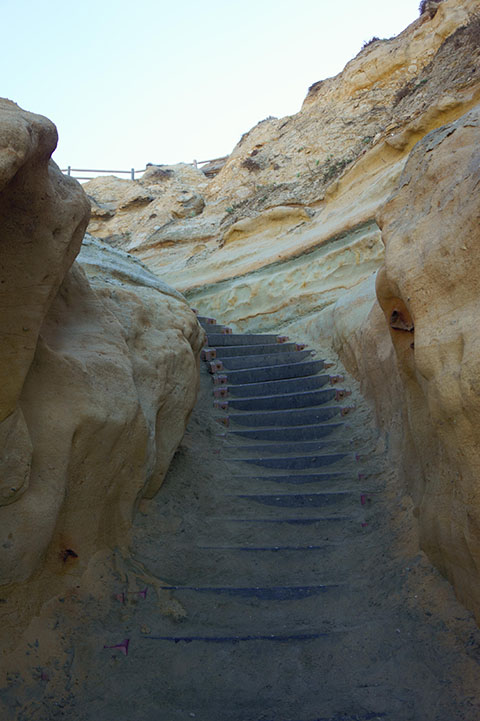 Bề ngang của cầu thang chỉ rộng vừa đủ rộng cho một người thoải mái lên xuống. Cát lại phủ trên bậc thang nên rất dễ bị trượt dù bạn đã cần thận bước đi từng bước một.