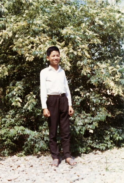 Và dưới đây là hình anh tôi lúc 13 tuổi, chụp trước cây hoa Ngâu đang nở rộ. Năm tháng đã trôi qua nhưng trong lòng tôi vẫn nhớ mùi thơm thoang thoảng ngọt ngào của hoa Ngâu. Vẫn nhớ cảnh mưa phùn bay lất phất trên cây hoa Ngâu tạo nên một vẻ đẹp nhẹ nhàng, nên thơ … ghi sâu vào tiềm thức thật khó quên. Để khỏi nói lung tung, nói túm lại là nhớ ơi là nhớ cái tuổi hồn nhiên đẹp nhất đời người.