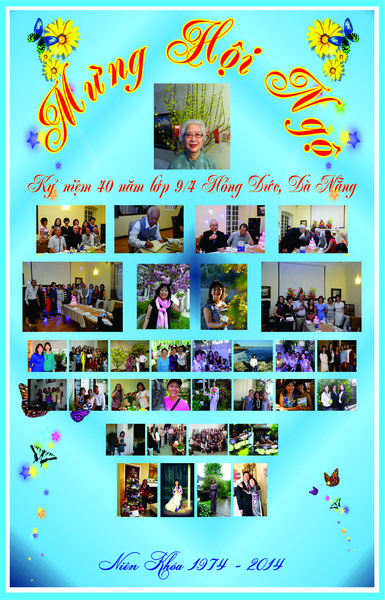 Rồi nghĩ đến sinh nhật trang web tròn sáu tuổi, rồi kỷ niệm 40 năm lớp 9/4 mình nữa chứ! Thế là QA lại nảy sinh ý tưởng làm một tấm phông lớn, chọn hình những bạn 9/4 ở xa, không thể về tham dự được buổi hội ngộ này với tấm ảnh của giáo sư hướng dẫn 9/4 là cô Thu Nga. Tất cả bạn bè và cô giáo sẽ cùng hiện diện để không khí của mùa đông thêm ấm áp và đông vui. QA đem ý tưởng này đến trong cuộc họp tổ chức sinh nhật web của nhóm bạn 9/4 Đà Nẵng, tất cả đều hoan nghênh, vui quá! Đang suy nghĩ và bàn bạc về những chữ sẽ ghi lên bánh sinh nhật thì nghe Phạm Ba hô: "Mừng SN web ghi trên bánh còn Hội ngộ 40 năm ghi trên tấm bảng" vậy là QA nhận làm ngay.